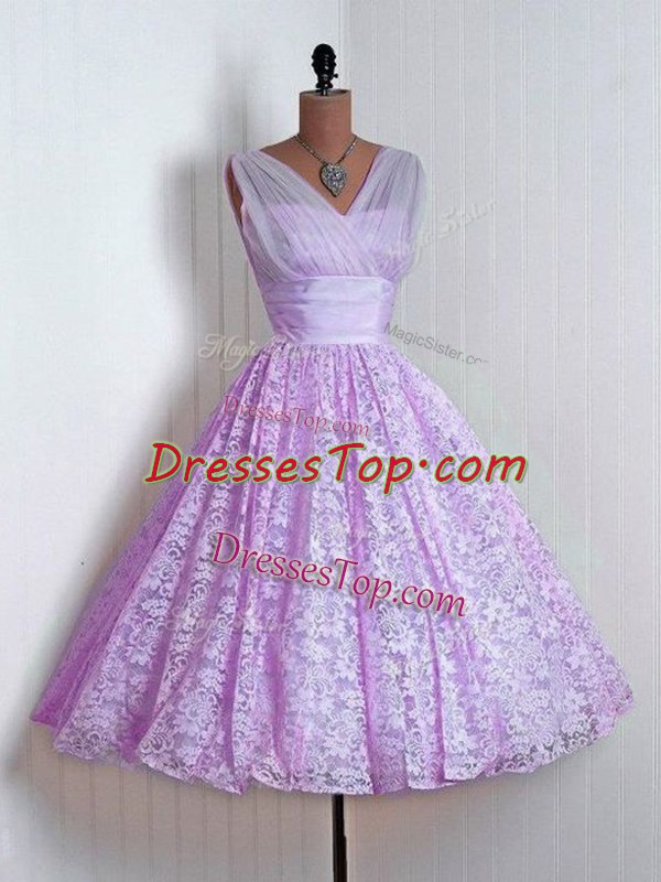 Custom Design Lace Sleeveless Mini Length Vestidos de Damas and Lace