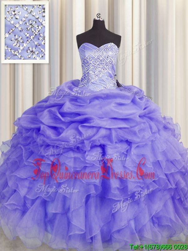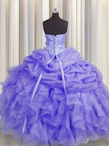 Custom Design Lavender Sleeveless Beading and Ruffles Floor Length Quinceanera Gowns