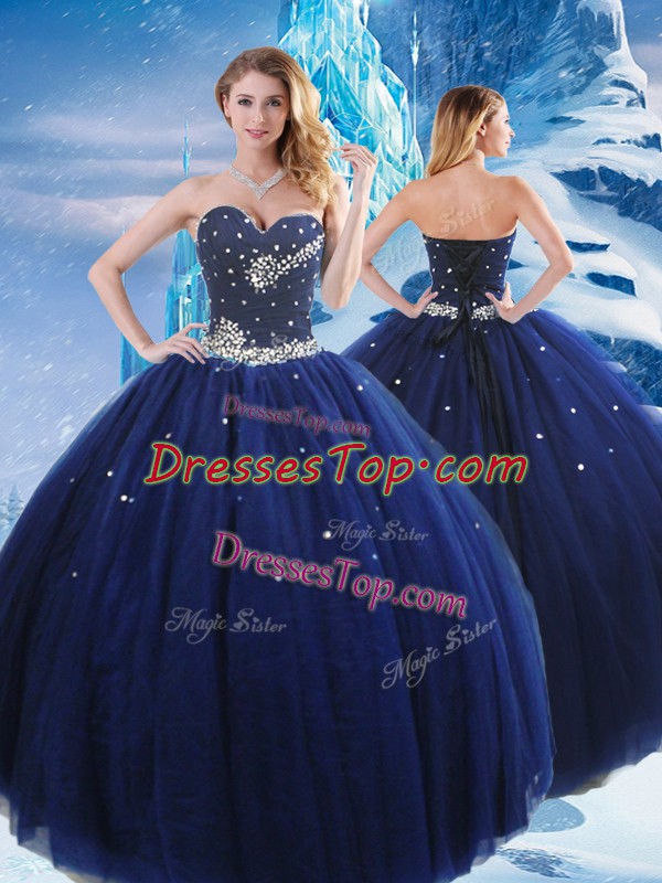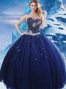 Custom Design Navy Blue Sweetheart Lace Up Beading 15 Quinceanera Dress Sleeveless