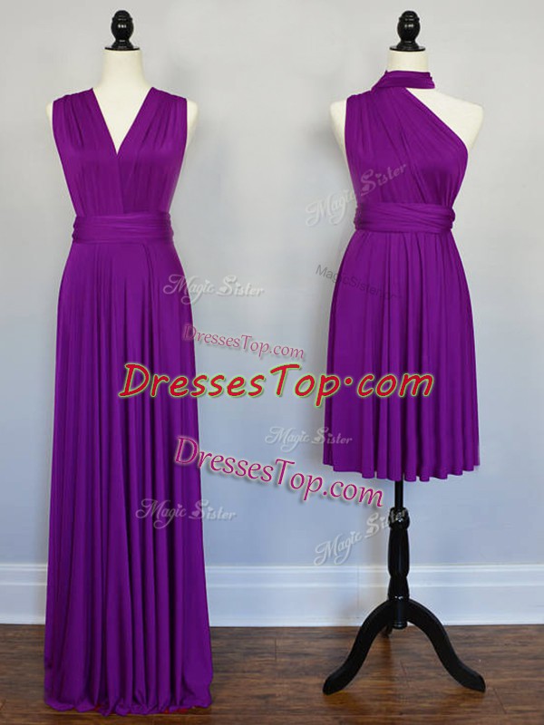 Custom Design Purple Chiffon Lace Up Halter Top Sleeveless Floor Length Dama Dress for Quinceanera Beading and Ruching