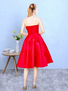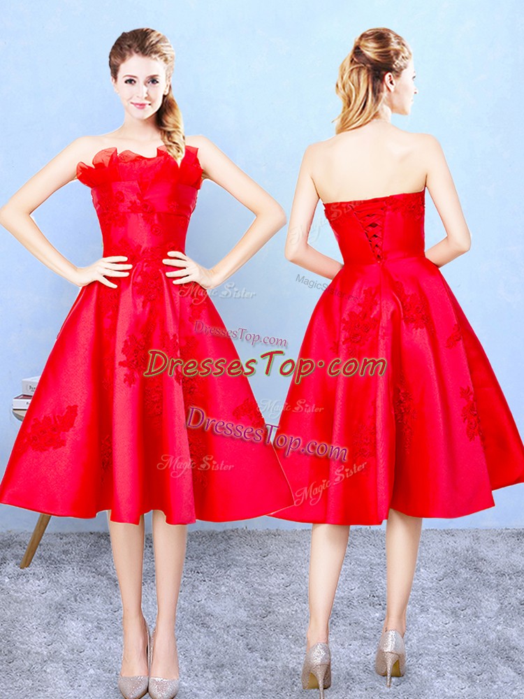 Custom Design Red Sleeveless Satin Lace Up Damas Dress for Wedding Party