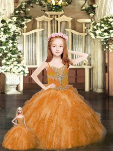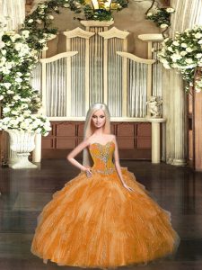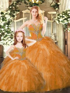 Custom Design Rust Red Lace Up Sweetheart Beading and Ruffles Quinceanera Dresses Tulle Sleeveless