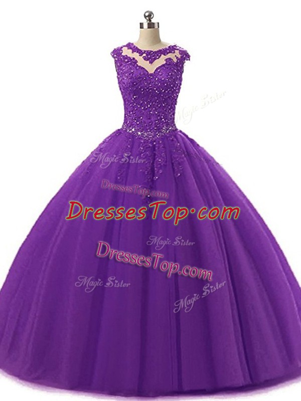 Custom Design Scoop Sleeveless Lace Up Sweet 16 Dress Dark Purple Tulle