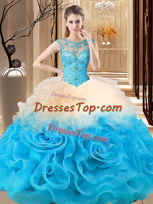 Custom Design Scoop Sleeveless Lace Up Sweet 16 Dress Multi-color Fabric With Rolling Flowers