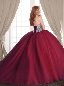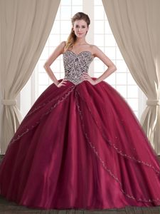 Custom Design Three Piece Sweetheart Sleeveless Lace Up Sweet 16 Dresses Burgundy Tulle