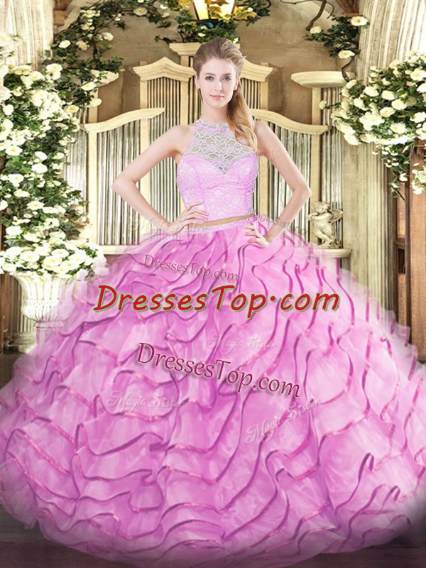 Custom Design Two Pieces Sleeveless Rose Pink Sweet 16 Quinceanera Dress Brush Train Zipper