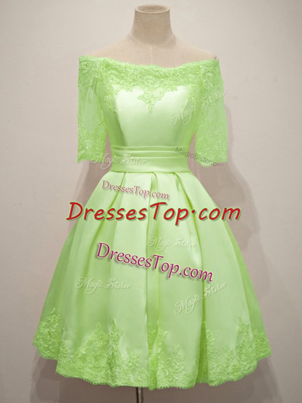 Custom Design Yellow Green Lace Up Dama Dress Lace Half Sleeves Knee Length