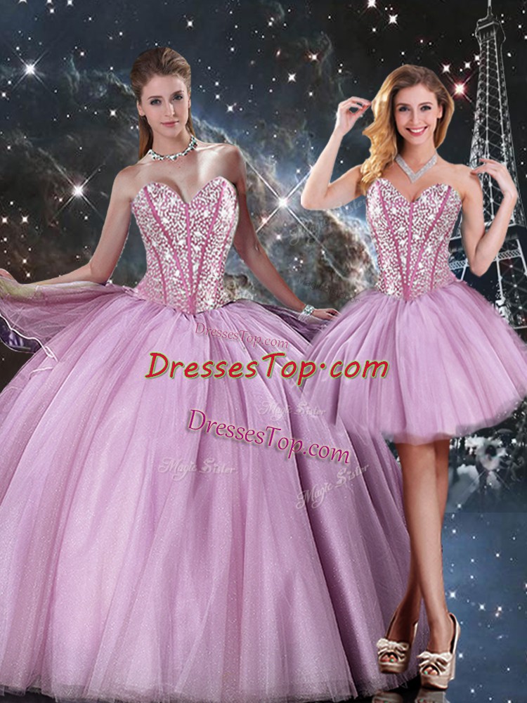 Custom Designed Floor Length Lace Up Vestidos de Quinceanera Lilac for Military Ball and Sweet 16 and Quinceanera with Beading