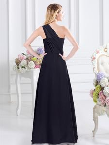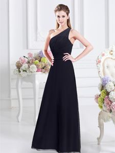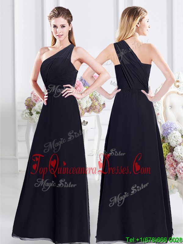 Custom Designed Floor Length Navy Blue Dama Dress One Shoulder Sleeveless Side Zipper