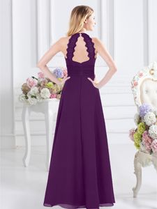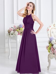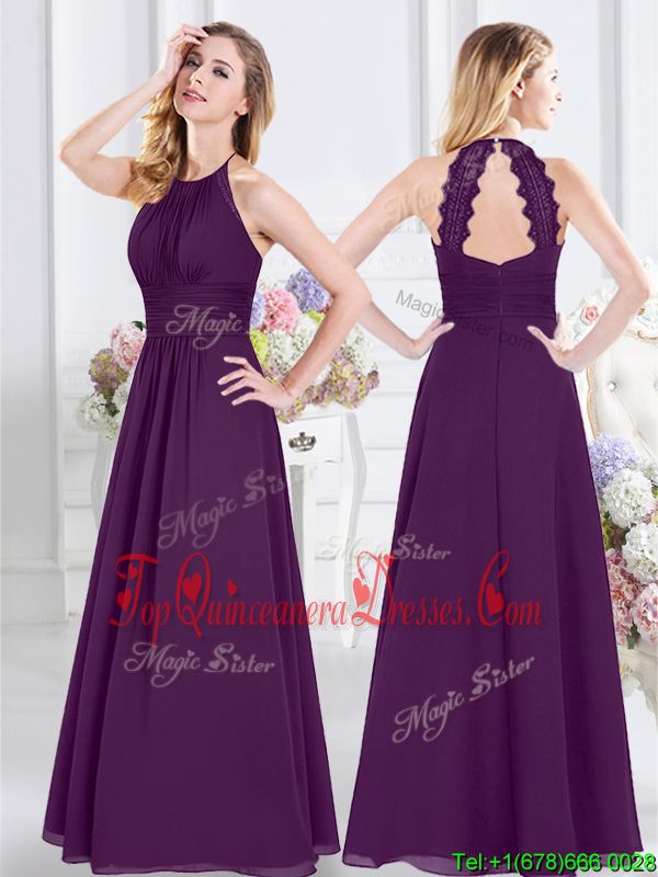 Custom Designed Floor Length Purple Quinceanera Court Dresses Halter Top Sleeveless Zipper
