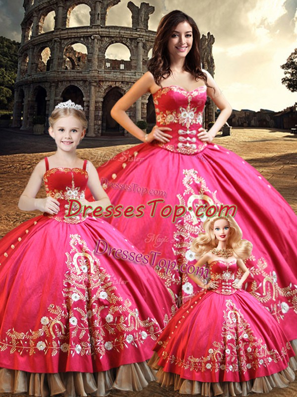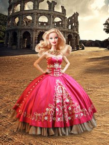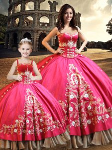 Custom Designed Hot Pink Ball Gowns Sweetheart Sleeveless Taffeta Floor Length Lace Up Beading and Embroidery Sweet 16 Dress