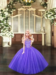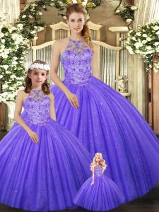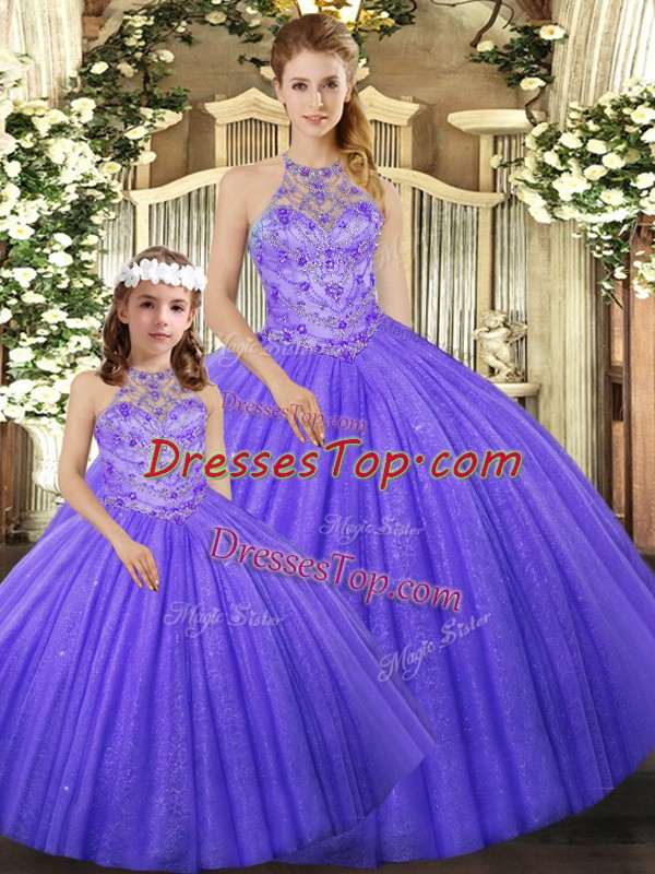 Custom Designed Lavender Tulle Lace Up Quinceanera Dresses Sleeveless Floor Length Beading