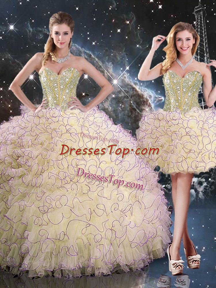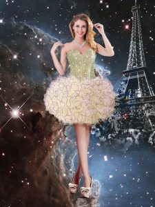 Custom Designed Light Yellow Ball Gowns Beading and Ruffles Sweet 16 Quinceanera Dress Lace Up Organza Sleeveless Floor Length