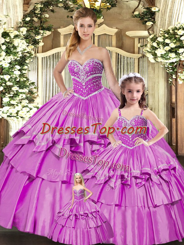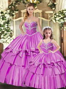 Custom Designed Lilac Ball Gowns Taffeta Sweetheart Sleeveless Beading and Ruffled Layers Floor Length Lace Up 15 Quinceanera Dress