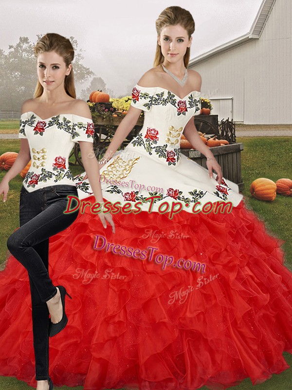 Custom Designed Organza Sleeveless Floor Length 15th Birthday Dress and Embroidery and Ruffles