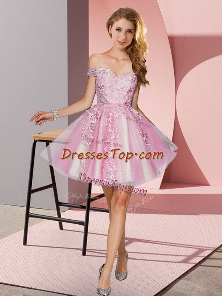 Custom Designed Pink Sleeveless Tulle Zipper Court Dresses for Sweet 16 for Prom and Party and Wedding Party
