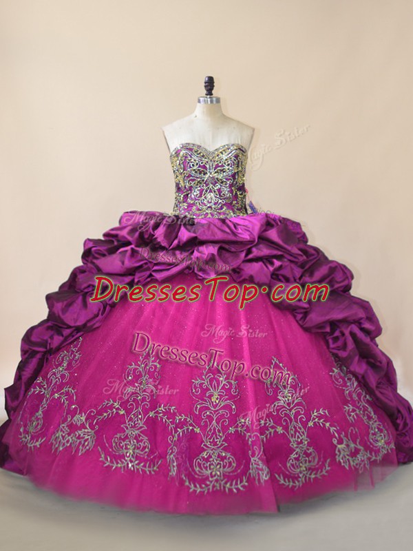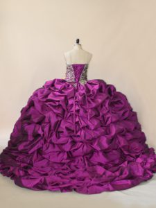 Custom Designed Purple Sweetheart Lace Up Beading and Pick Ups Quince Ball Gowns Brush Train Sleeveless