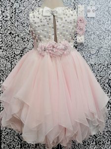 Custom Designed Sleeveless Backless Asymmetrical Beading and Hand Made Flower Winning Pageant Gowns