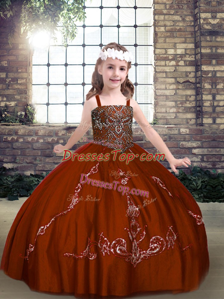 Custom Designed Straps Sleeveless Tulle Little Girls Pageant Dress Wholesale Beading Lace Up