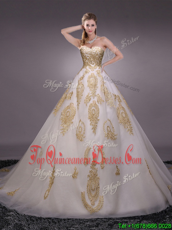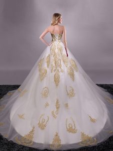 Custom Designed White Ball Gowns Tulle Sweetheart Sleeveless Appliques With Train Lace Up 15 Quinceanera Dress Brush Train