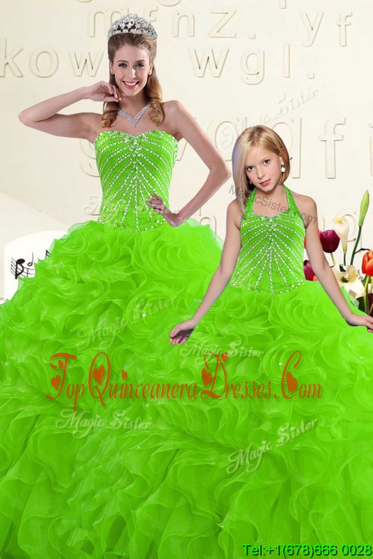 Custom Designed Yellow Lace Up Ball Gown Prom Dress Beading and Ruffles Sleeveless Floor Length