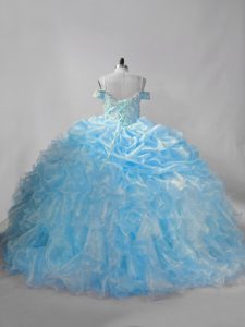Custom Fit Baby Blue Ball Gowns Beading and Ruffles and Pick Ups Quinceanera Dress Lace Up Organza Sleeveless