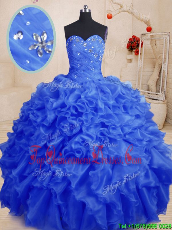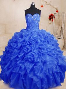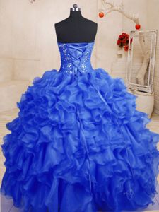 Custom Fit Beading and Ruffles Quinceanera Dresses Royal Blue Lace Up Sleeveless Floor Length