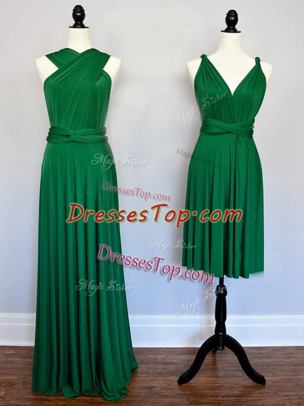 Custom Fit Dark Green Empire Ruching Court Dresses for Sweet 16 Lace Up Chiffon Sleeveless Floor Length