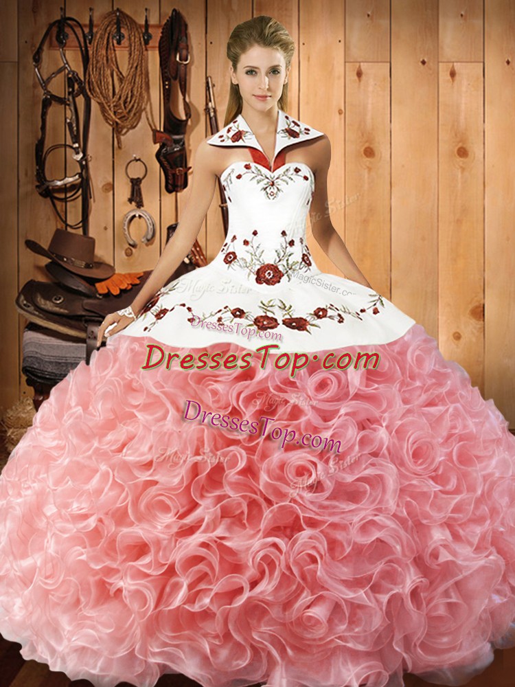 Custom Fit Fabric With Rolling Flowers Sleeveless Floor Length 15th Birthday Dress and Embroidery