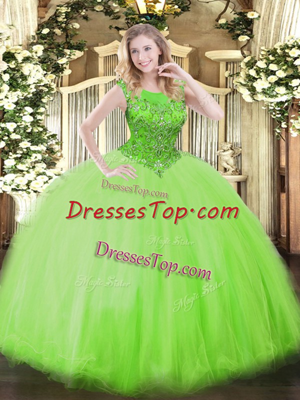 Custom Fit Floor Length 15 Quinceanera Dress Tulle Sleeveless Beading