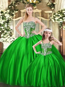 Custom Fit Floor Length Green Quinceanera Dresses Strapless Sleeveless Lace Up
