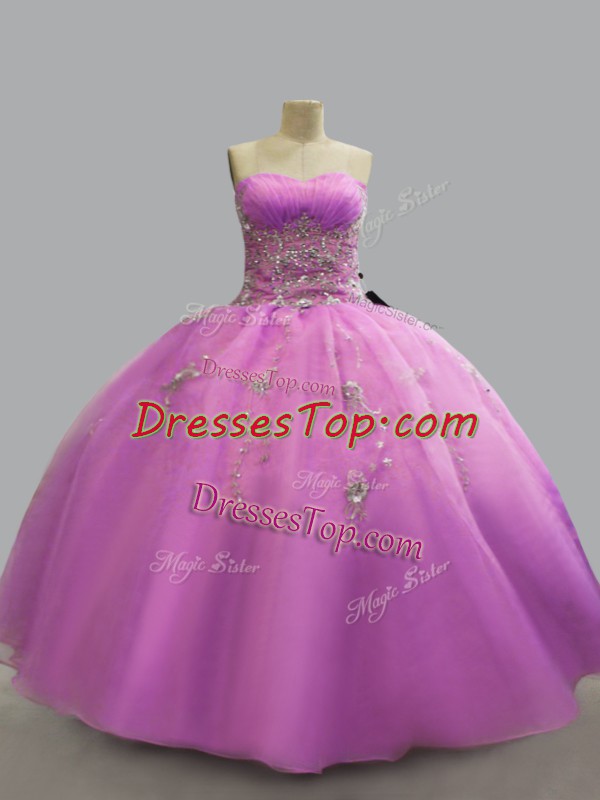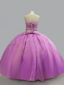 Custom Fit Lilac Ball Gowns Organza Strapless Sleeveless Beading Floor Length Lace Up Quinceanera Dress
