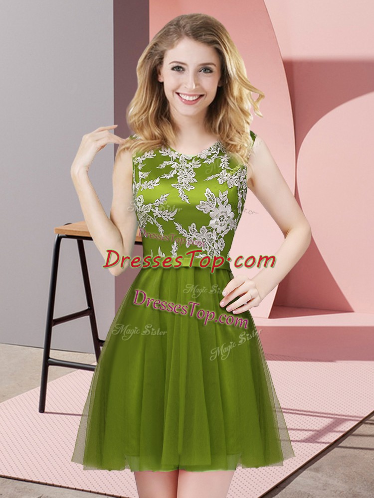 Custom Fit Mini Length Olive Green Dama Dress Tulle Sleeveless Lace