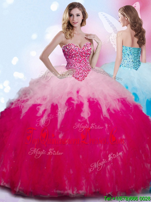 Custom Fit Multi-color Sweetheart Neckline Beading and Ruffles Sweet 16 Quinceanera Dress Sleeveless Lace Up