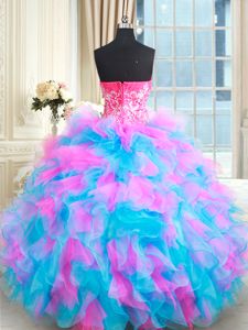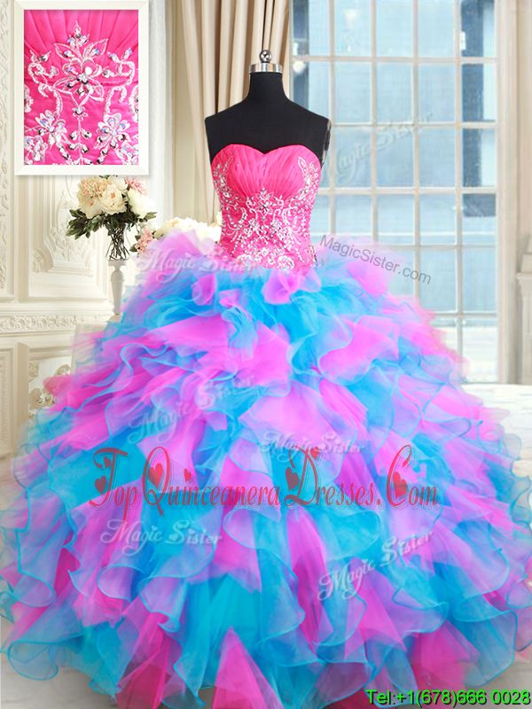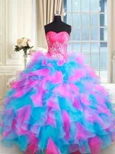 Custom Fit Multi-color Vestidos de Quinceanera Military Ball and Sweet 16 and Quinceanera and For with Beading and Ruffles Sweetheart Sleeveless Zipper