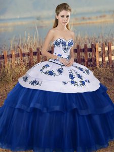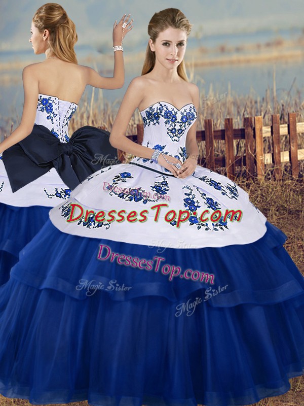 Custom Fit Royal Blue Quinceanera Dresses Military Ball and Sweet 16 and Quinceanera with Embroidery and Bowknot Sweetheart Sleeveless Lace Up