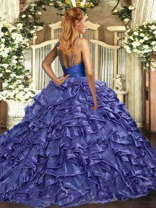 Custom Fit Rust Red Ball Gowns V-neck Sleeveless Organza Sweep Train Backless Ruffles Sweet 16 Dresses