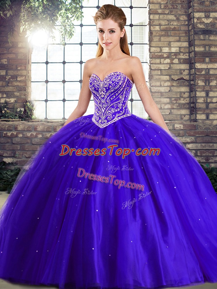 Custom Fit Sleeveless Brush Train Beading Lace Up Quinceanera Gowns