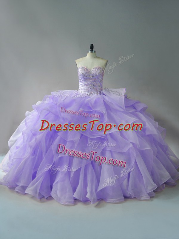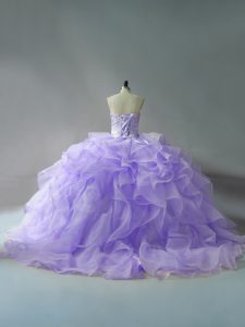 Custom Fit Sleeveless Brush Train Lace Up Beading and Ruffles Quinceanera Gown