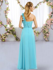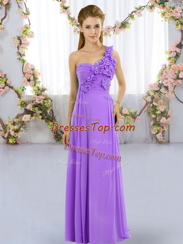 Custom Fit Sleeveless Floor Length Hand Made Flower Lace Up Quinceanera Court Dresses with Lavender