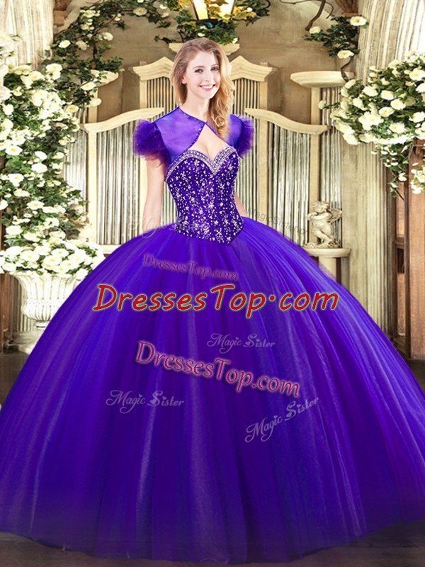 Custom Fit Sweetheart Sleeveless Tulle Quince Ball Gowns Beading Lace Up