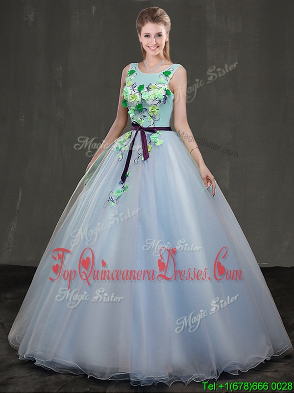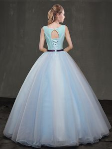 Custom Fit V-neck Sleeveless Tulle Sweet 16 Dresses Appliques Lace Up