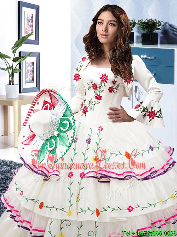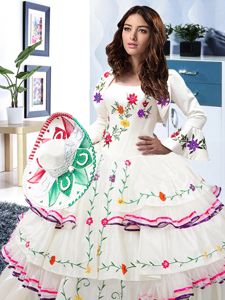 Custom Fit White Organza and Taffeta Lace Up Strapless Sleeveless Floor Length Quinceanera Dress Embroidery and Ruffled Layers