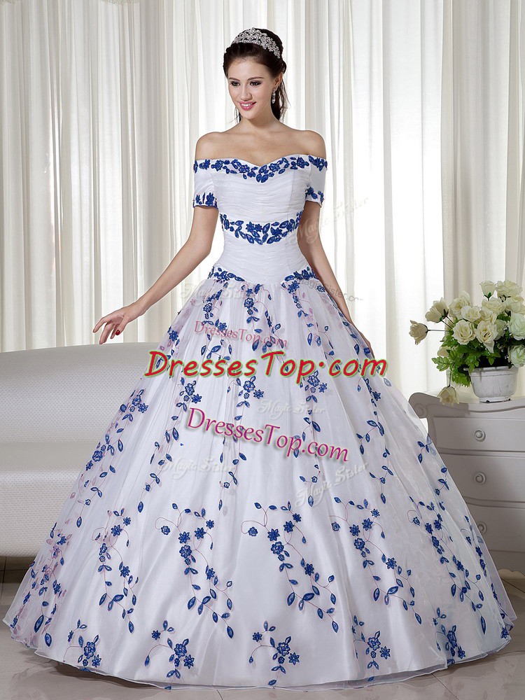 Custom Fit White Short Sleeves Organza Lace Up Quinceanera Dress for Military Ball and Sweet 16 and Quinceanera