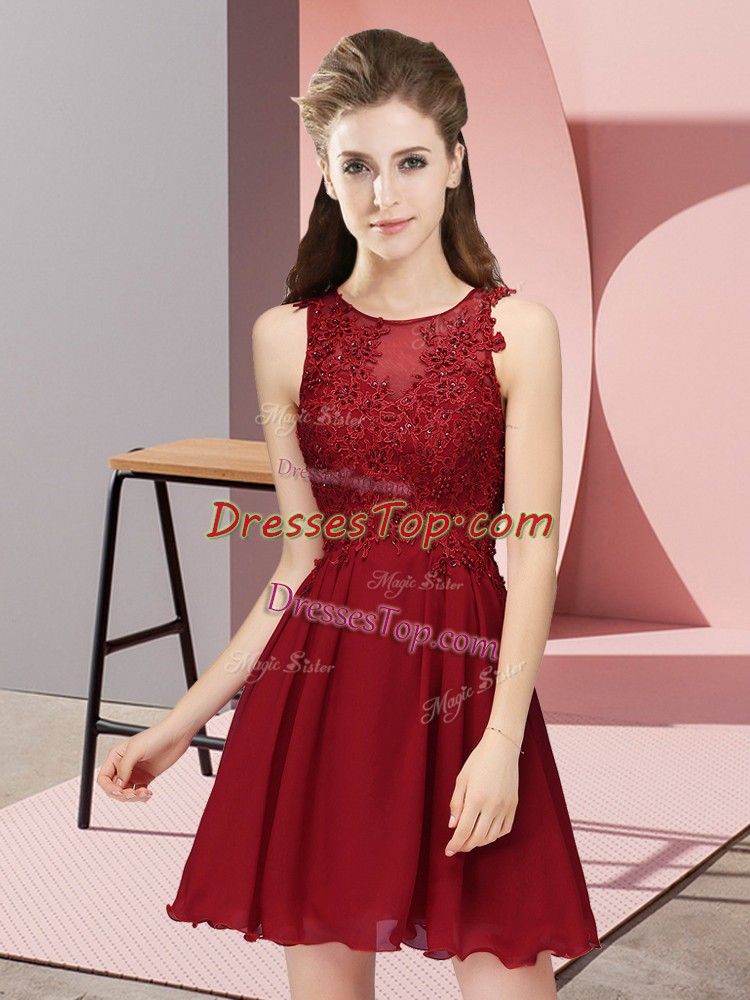 Custom Fit Wine Red Scoop Neckline Appliques Vestidos de Damas Sleeveless Zipper