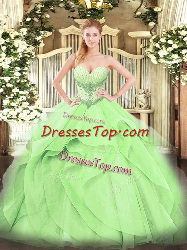 Custom Fit Yellow Green Ball Gowns Sweetheart Sleeveless Tulle Floor Length Lace Up Beading and Ruffles Quinceanera Gowns