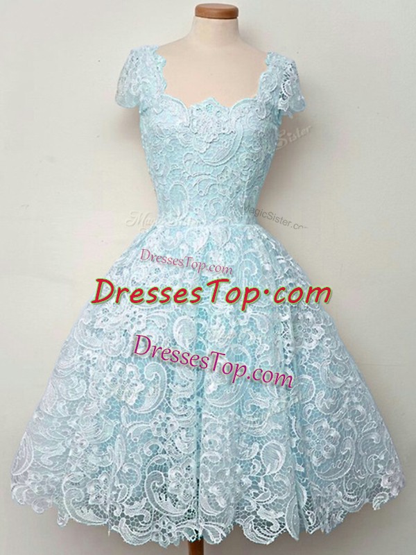 Custom Made Aqua Blue Quinceanera Court Dresses Prom and Party and Wedding Party with Lace Straps Cap Sleeves Lace Up
