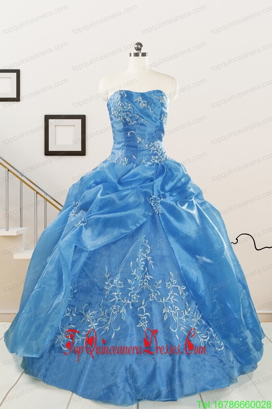 Custom Made Baby Blue Quinceanera Dresses with Embroidery for 2015