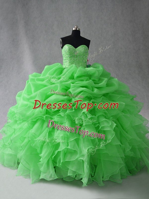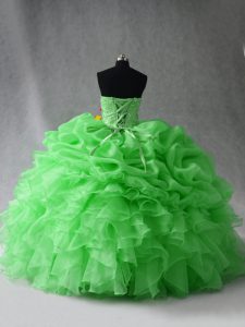 Custom Made Ball Gowns Sweetheart Sleeveless Organza Floor Length Lace Up Beading and Ruffles and Pick Ups 15 Quinceanera Dress