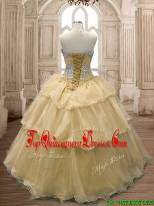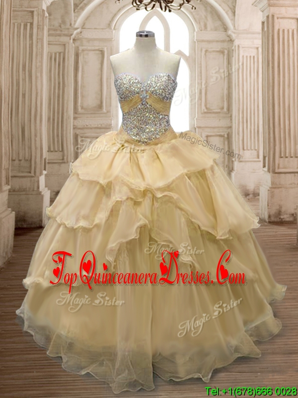 Custom Made Beaded and Ruffled Organza Sweet 16 Dress in Champagne
